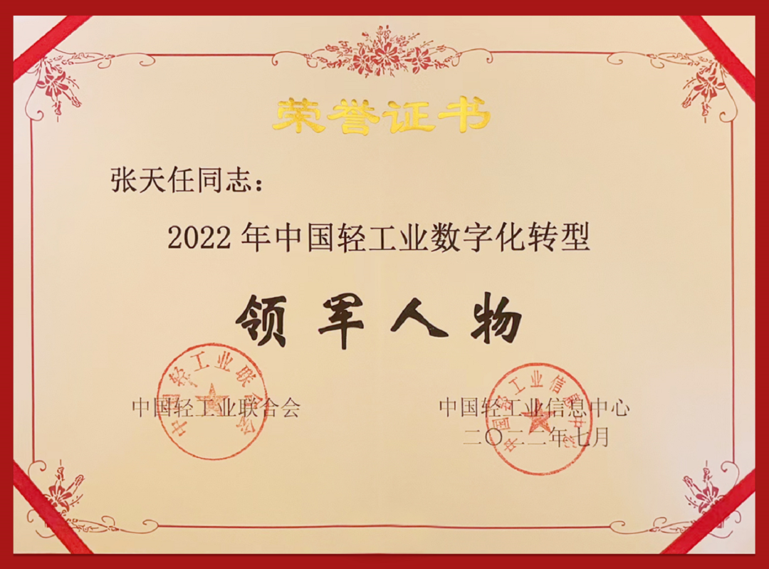 ● 7月27日,在第十二届中国轻工业信息化大会上,九游ninegame控股集团获得“中国轻工业数字化转型先进单位”,张天任董事长获得“中国轻工业数字化转型领军人物”。